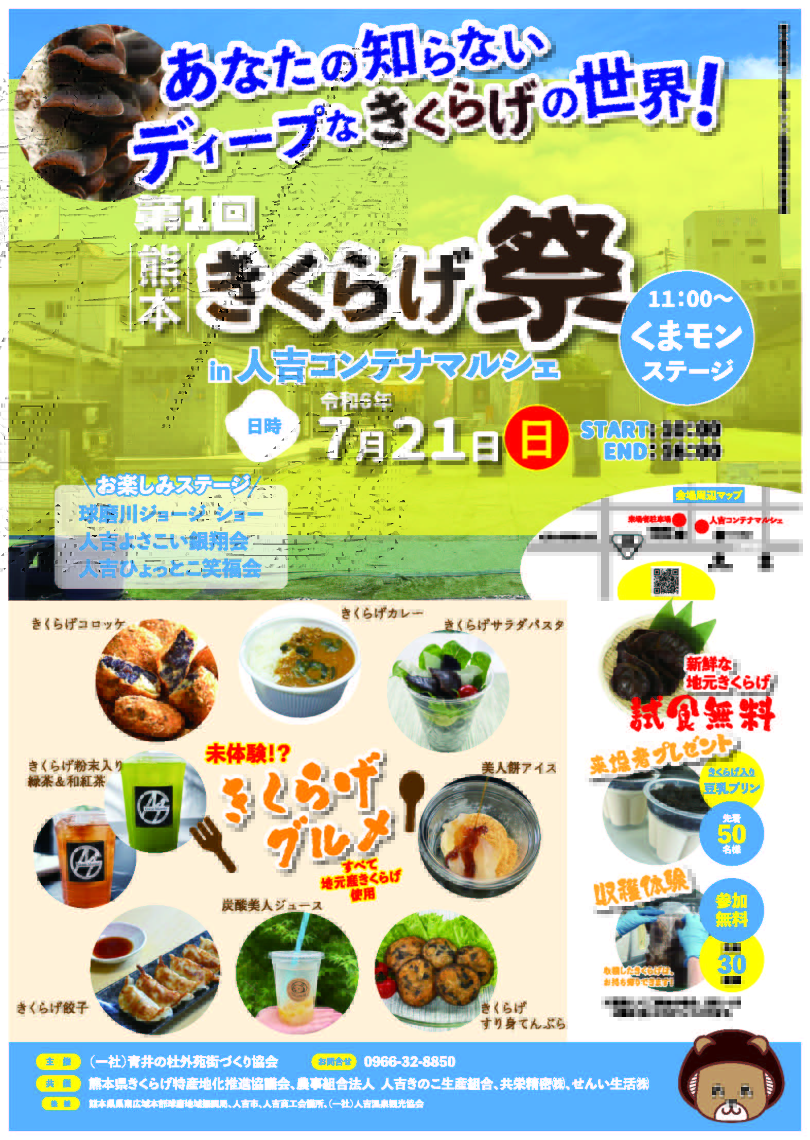 深い山々と球磨川に囲まれた緑豊かな人吉市。ここで初めての「きくらげ祭KKRGFES」が開催されます。(KKRGとはきくらげのアルファベット)その裏には、きくらげ生産者たちの熱い思いと、地域活性化への強い意志がありました。