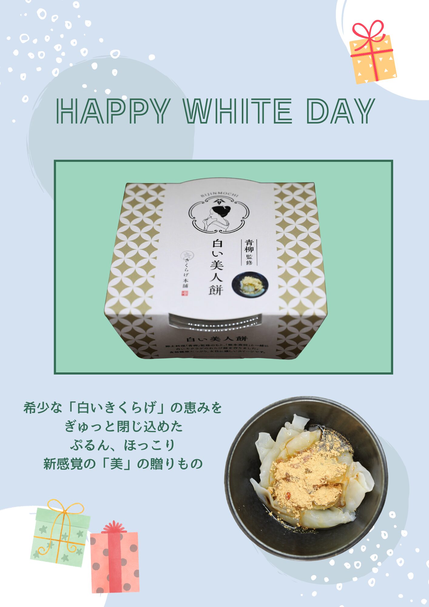 今回は、ホワイトデーのギフトに、熊本のこだわりが詰まった「白い美人餅」をご提案します。